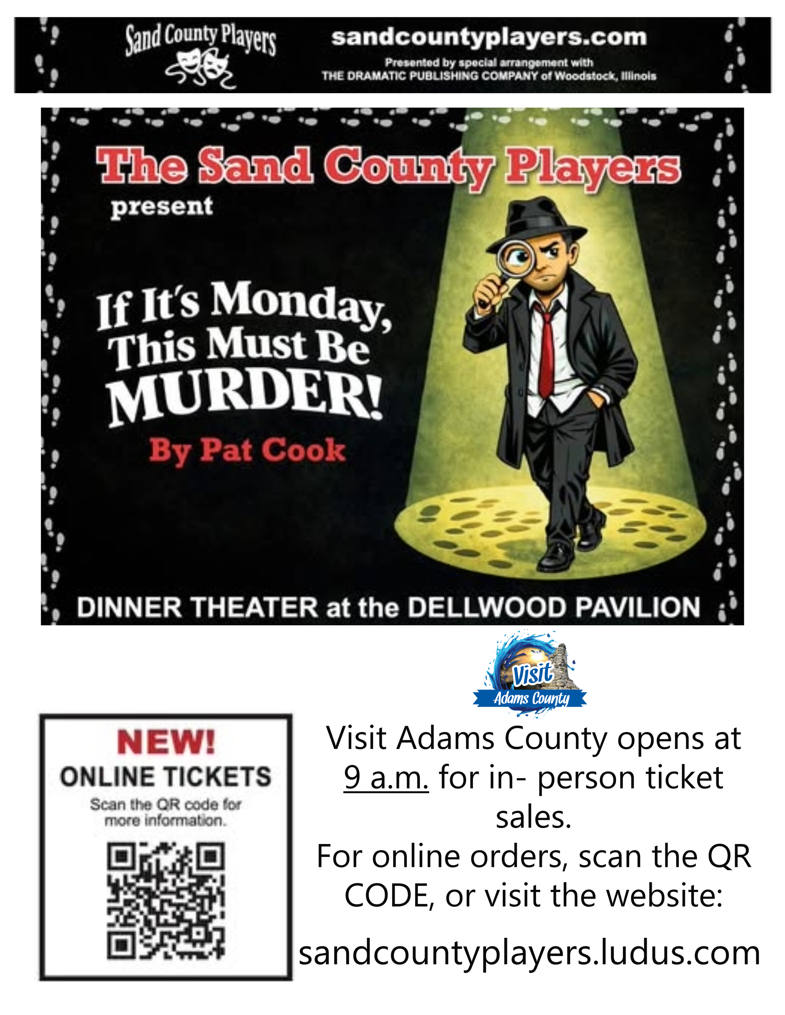 Sand County Player tickets are available at our office, Monday -Friday, 9 am-4pm, or can be ordered online at sandcountyplayers.ludus.com