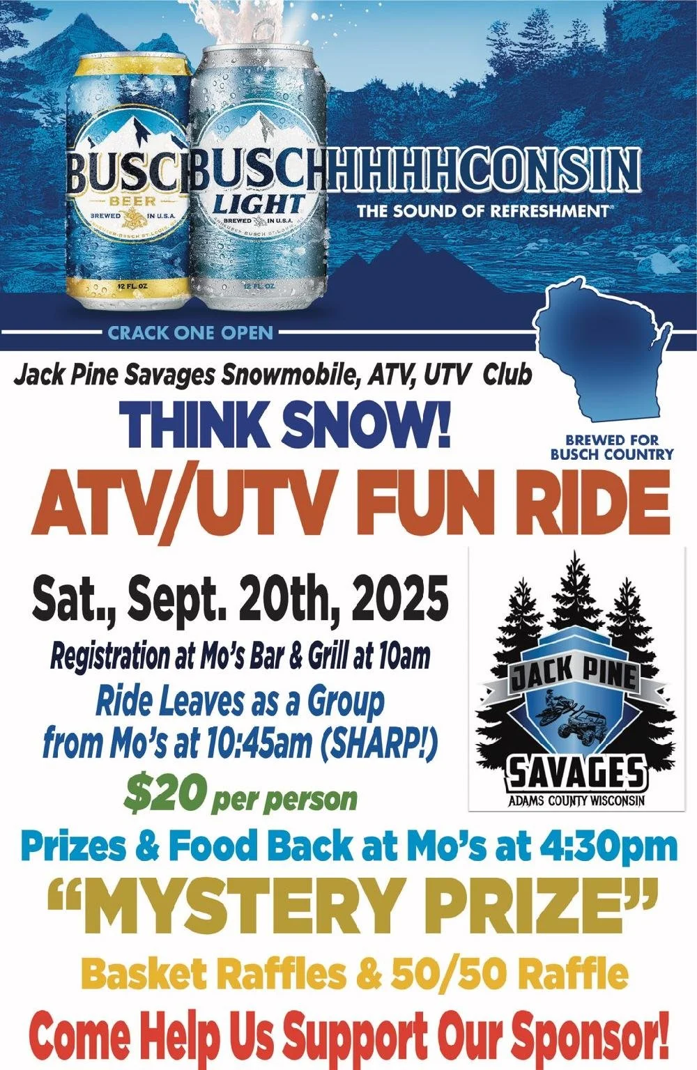 ATV/UTV Fun Ride Saturday, September 20, 2025 10:45 AM 6:00 PM Mo's Bar & Grill 1348 State Highway 13 Friendship, WI, 53934 United States (map) Google Calendar ICS