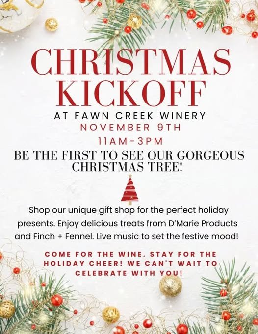 Bring your friends, sip something seasonal, and make a few festive memories with us at Fawn Creek Winery!