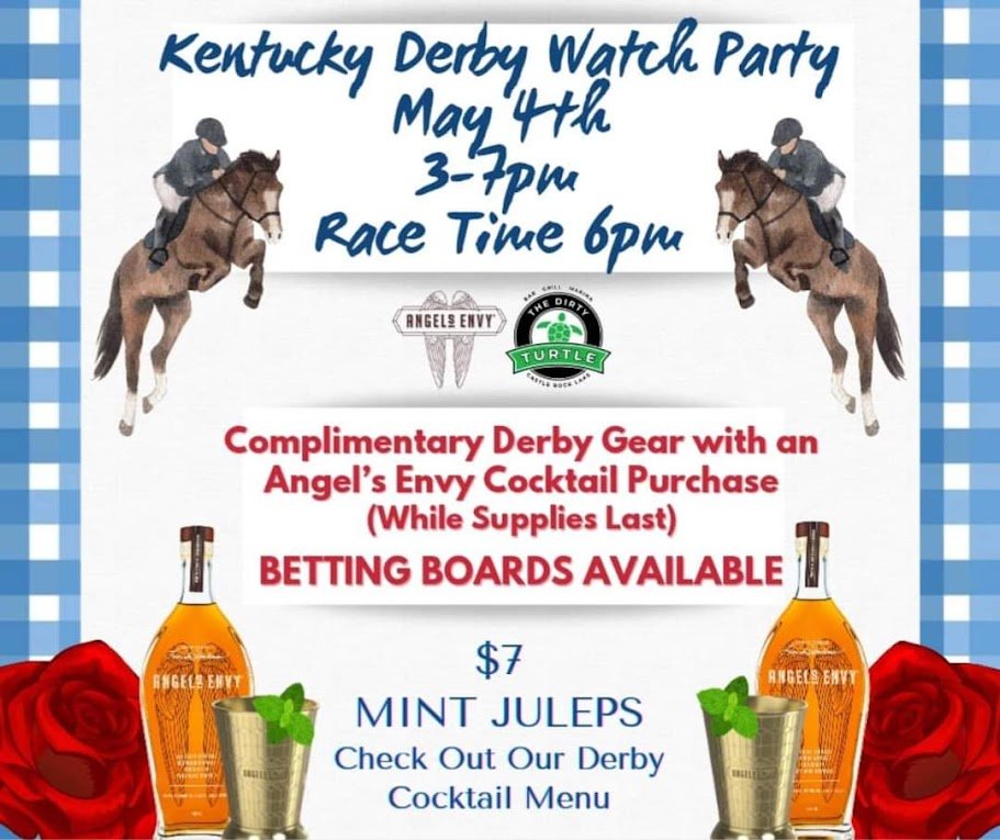 Back to All Events Kentucky Derby Watch Party Saturday, May 4, 2024 3:00 PM 7:00 PM The Dirty Turtle W5250 North Osprey Drive New Lisbon, WI, 53950 United States (map) Google Calendar ICS